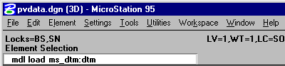 uSTN>> mdl load ms_dtm:dtm (enter) See figure below.